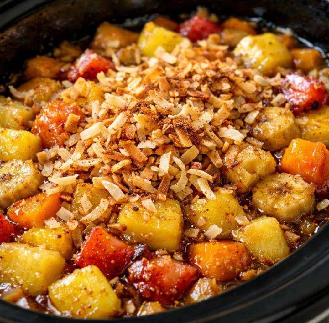 4-Ingredient Slow Cooker Tropical Fruit Bake: Sweet, Spiced, and Effortless