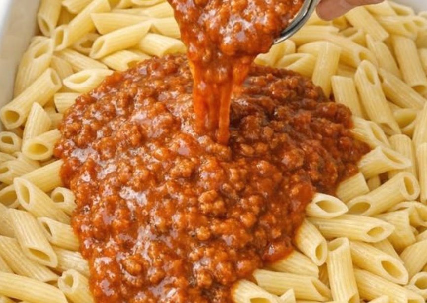 Uncooked penne pasta cooks directly in the sauce, absorbing all that sweet, tangy, savory sloppy joe flavor. The pasta releases starches that help thicken the sauce.