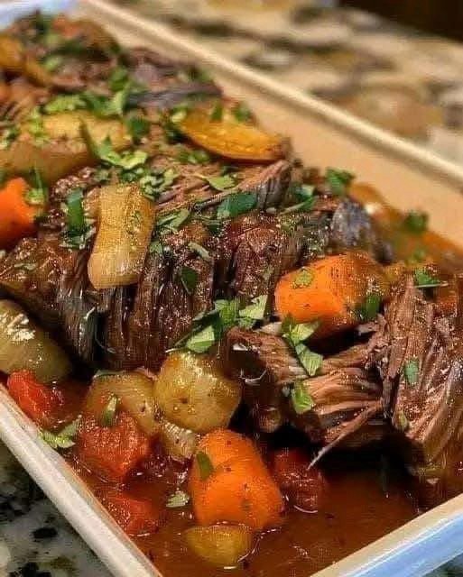 The beauty of pot roast lies in its simplicity. A few humble ingredients—beef, vegetables, broth, and herbs—transform into something extraordinary with patience and low, slow heat. The beef becomes buttery and tender, the vegetables soak up all the savory juices, and the gravy is pure liquid gold. Serve it with crusty bread or creamy mashed potatoes, and you have a dinner that will earn rave reviews.