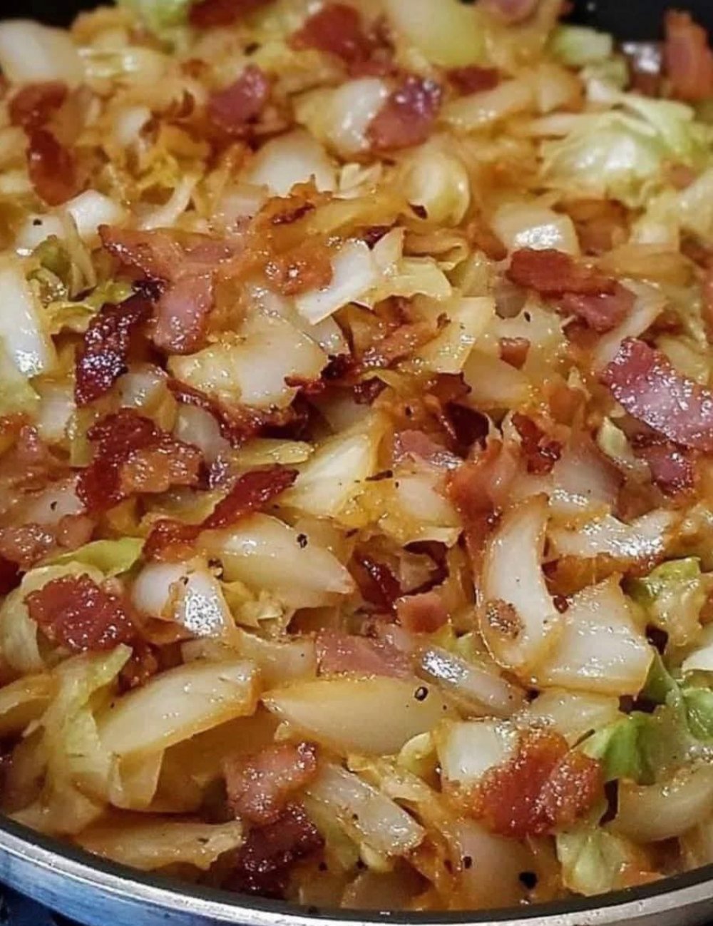 This savory, smoky fried cabbage is cooked with crispy bacon, sweet onion, and aromatic garlic. It is a quick, easy, and incredibly flavorful side dish.