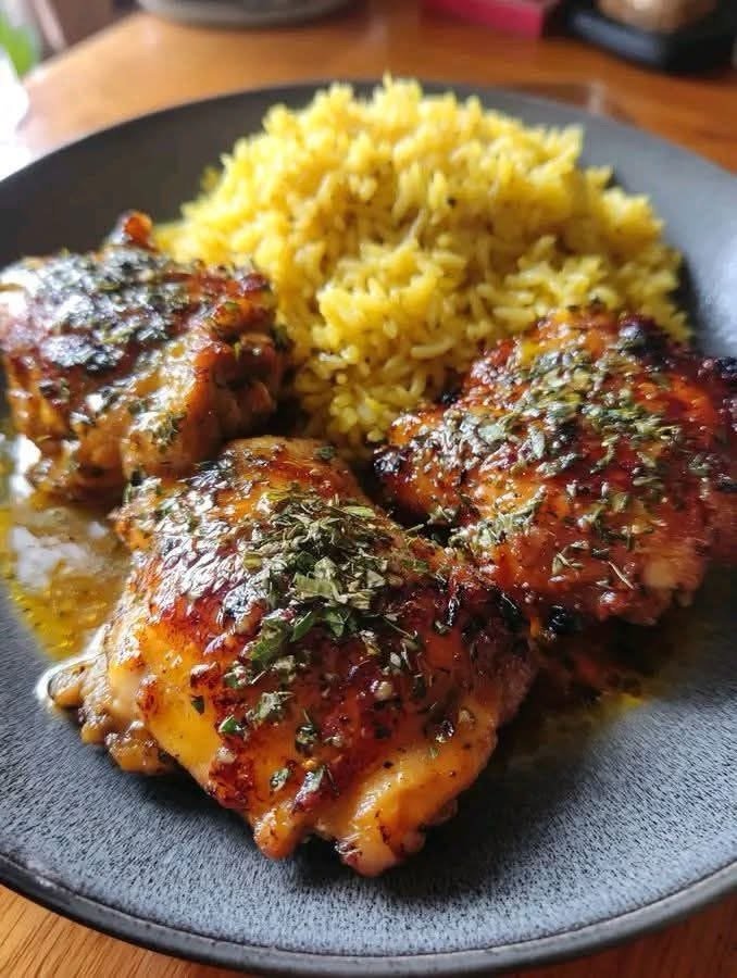 Honey mustard roasted chicken thighs with rice is the kind of meal that makes you feel like a kitchen pro. It is simple enough for a busy weeknight yet elegant enough for company. The sweet-tangy glaze caramelizes on the crispy chicken skin, while the rice absorbs all the savory, herby juices. Every bite is perfectly balanced.