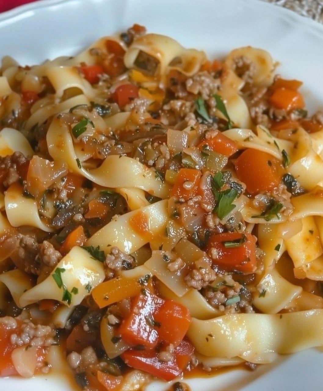 · Choose the right noodle: Wide pappardelle or fettuccine is ideal because its broad surface area catches the chunky sauce beautifully. Egg noodles also work well.