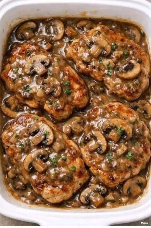 When you need a dinner that feels special but comes together in minutes, this recipe is the answer. The pork chops bake up tender and juicy, while the creamy mushroom sauce becomes rich and flavorful as it cooks. With just one dish and a handful of ingredients, you can have a satisfying meal that everyone will love.