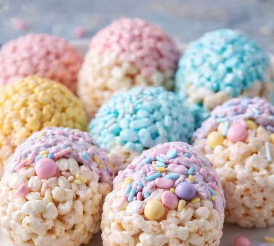 These festive Rice Krispies treats are shaped like Easter eggs and decorated with colorful sprinkles and candy melts. They are a fun, no-bake dessert for spring celebrations.