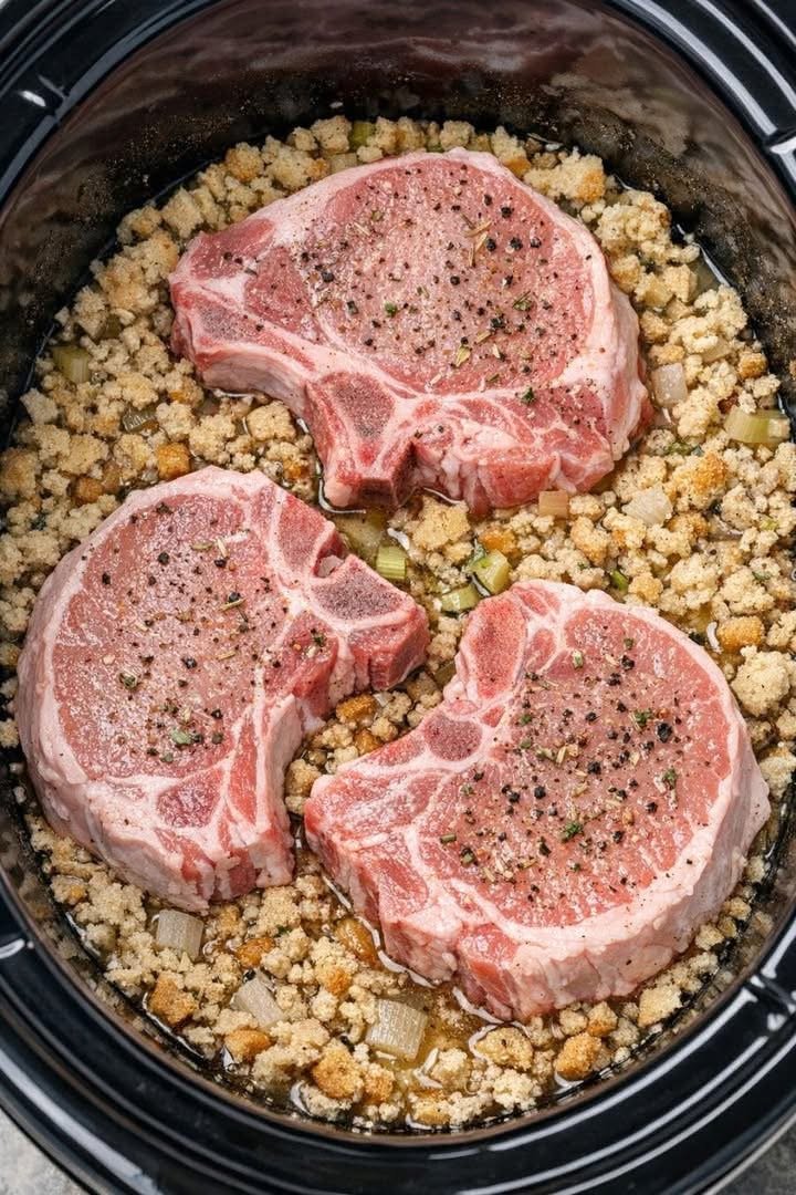 This recipe is a classic for a reason. It uses simple pantry staples: pork chops, stuffing mix, cream of mushroom soup, and chicken broth. The slow cooker does all the work, transforming these humble ingredients into a comforting, satisfying dinner that tastes like a warm hug.