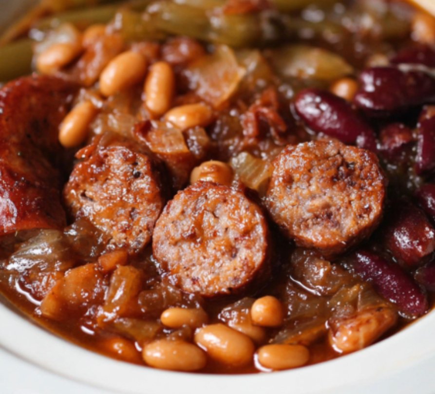 This easy slow cooker meal combines smoked sausage, baked beans, onion, and barbecue sauce into a rich, savory, and satisfying dish. Perfect for busy weeknights or cozy weekends.