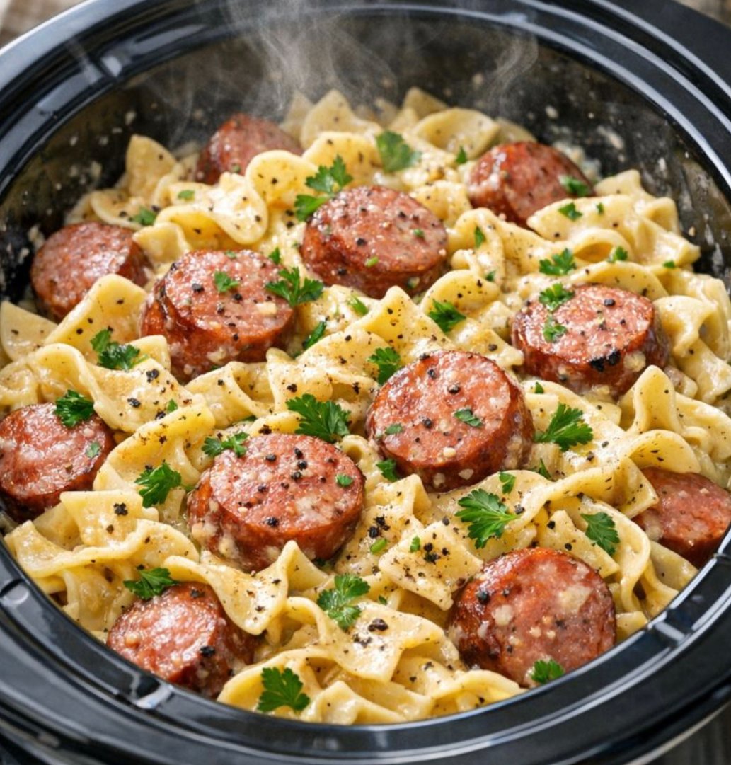 Slow Cooker Amish Sausage and Noodle Bake: Hearty, Creamy, and Comforting