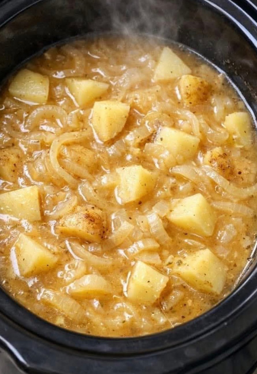 This Slow Cooker Potato & Onion Stew is a reminder that you don’t need expensive ingredients or complicated techniques to make a truly delicious meal. Potatoes and onions — two of the most humble, affordable ingredients in any kitchen — become something special when given time and gentle heat.